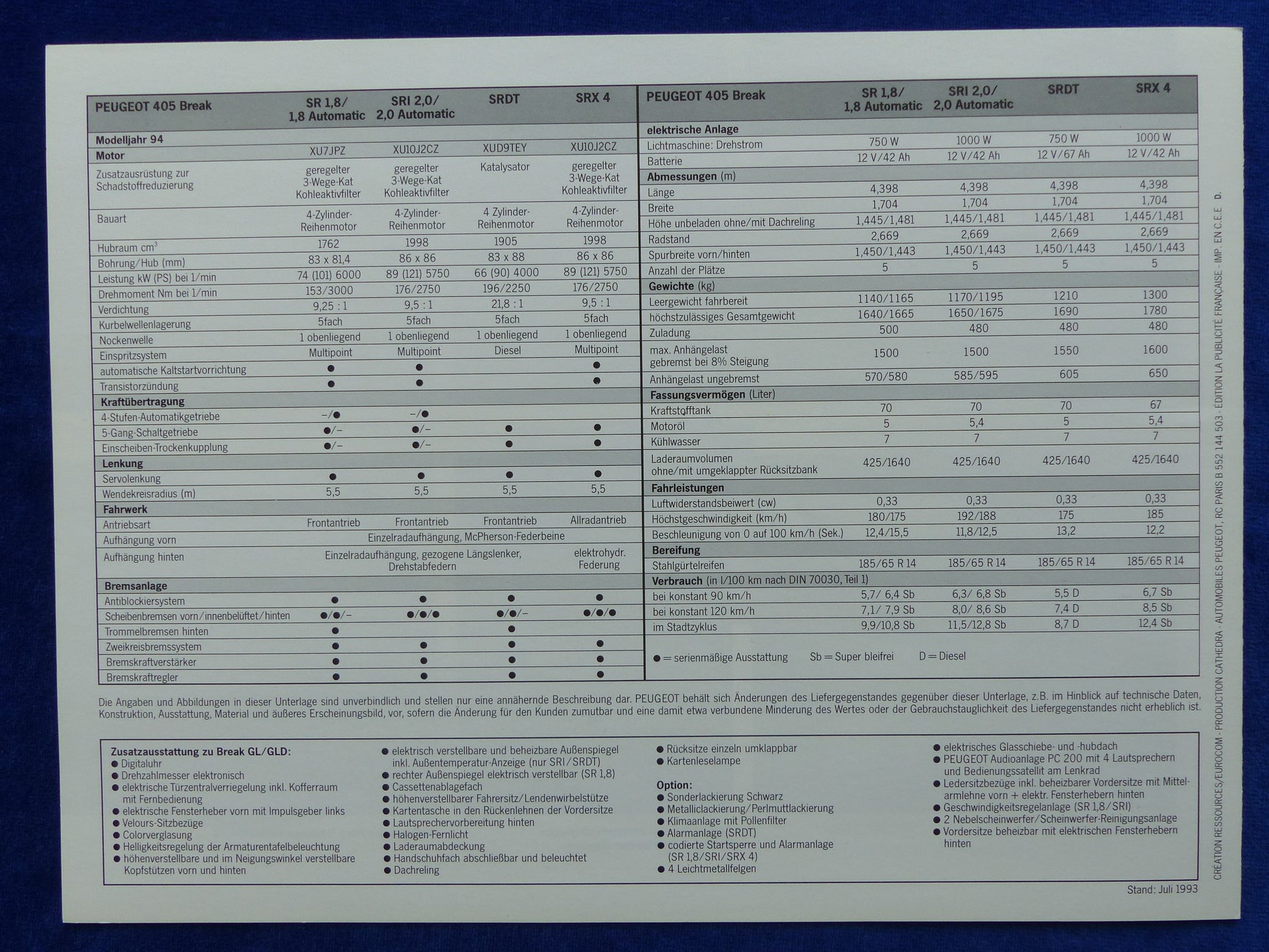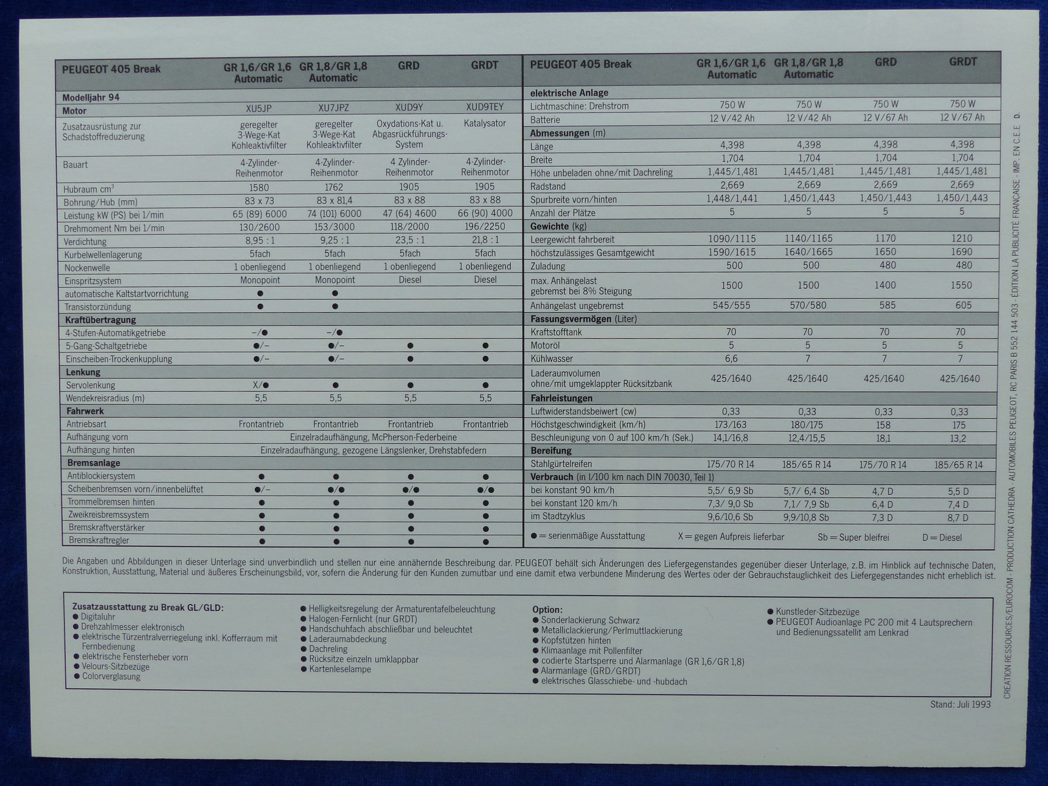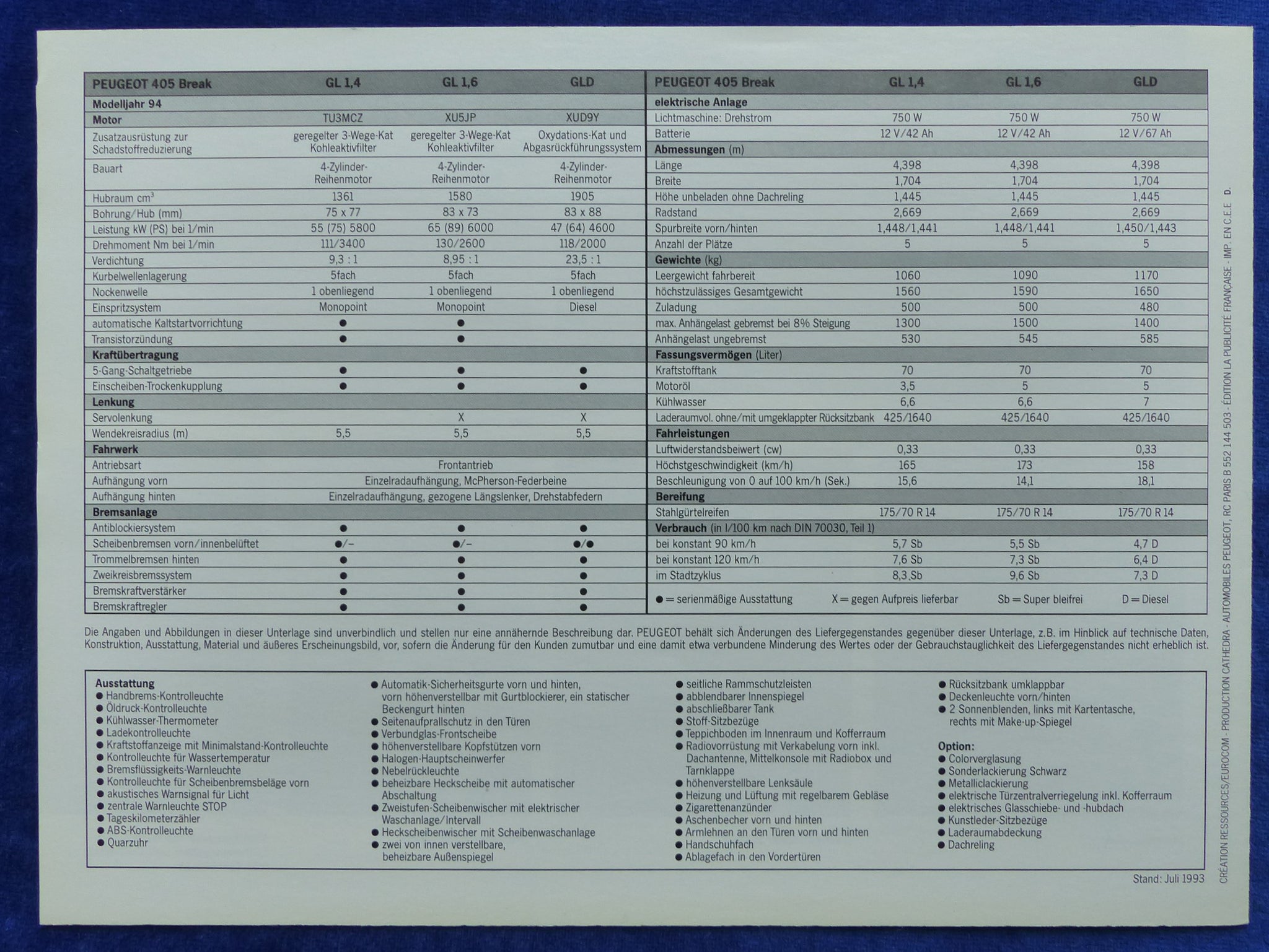 Inhalt / Modelle: u.a. 405 GL / GR / SR - Modelljahr 1994