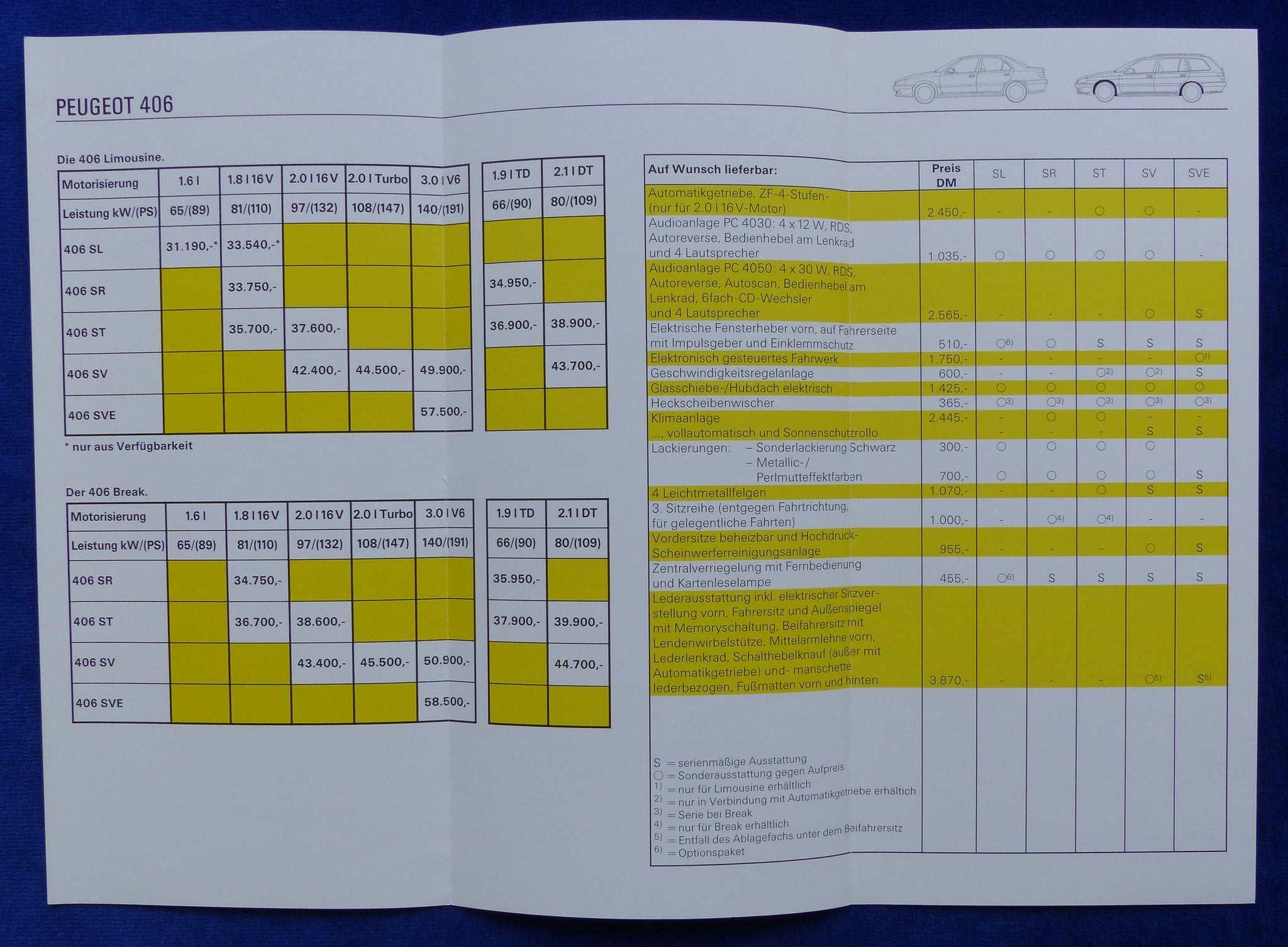 Inhalt / Modelle: u.a. 406 SL / SR / ST / SV / SVE - Modelljahr 1997