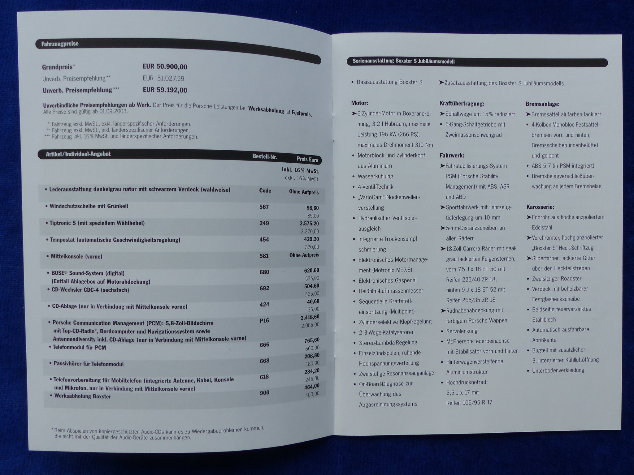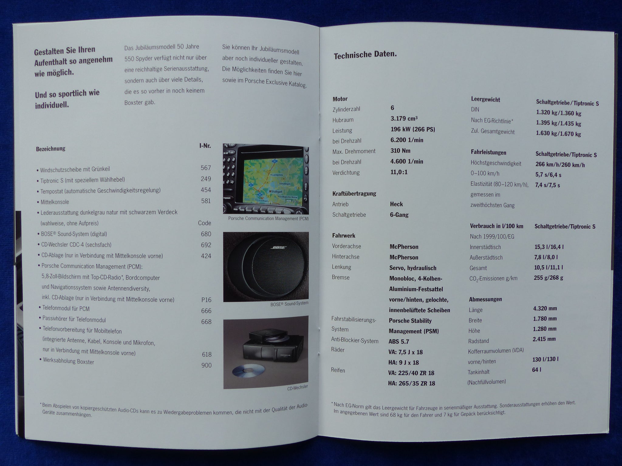 Inhalt / Modelle: das Boxster S Jubiläumsmodell "50 Jahre 550 Spyder" war auf 1953 Fahrzeuge limitiert - Modelljahr 2004