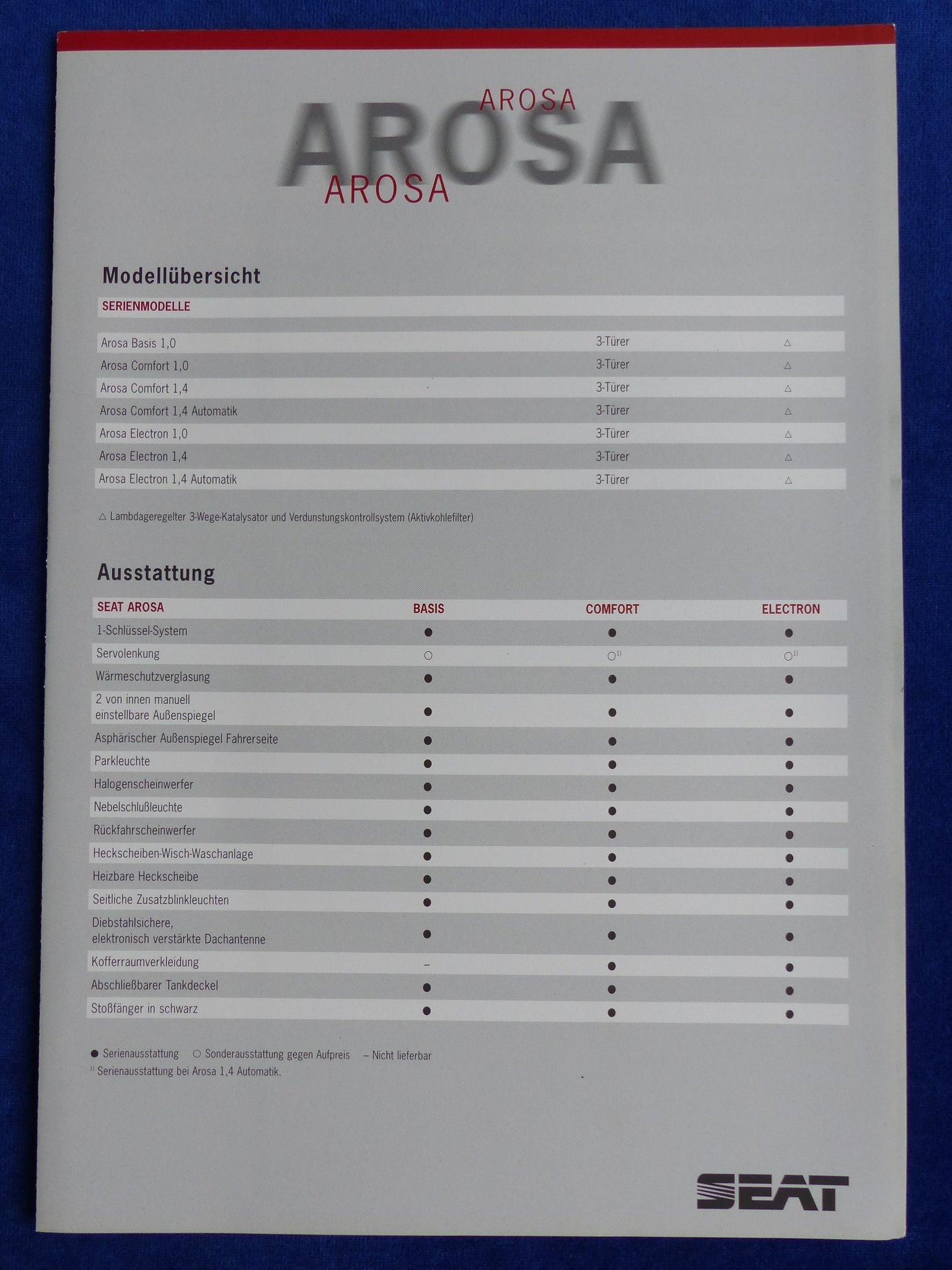 Inhalt / Modelle: u.a. Arosa Basis / Comfort / Electron - Modelljahr 1998