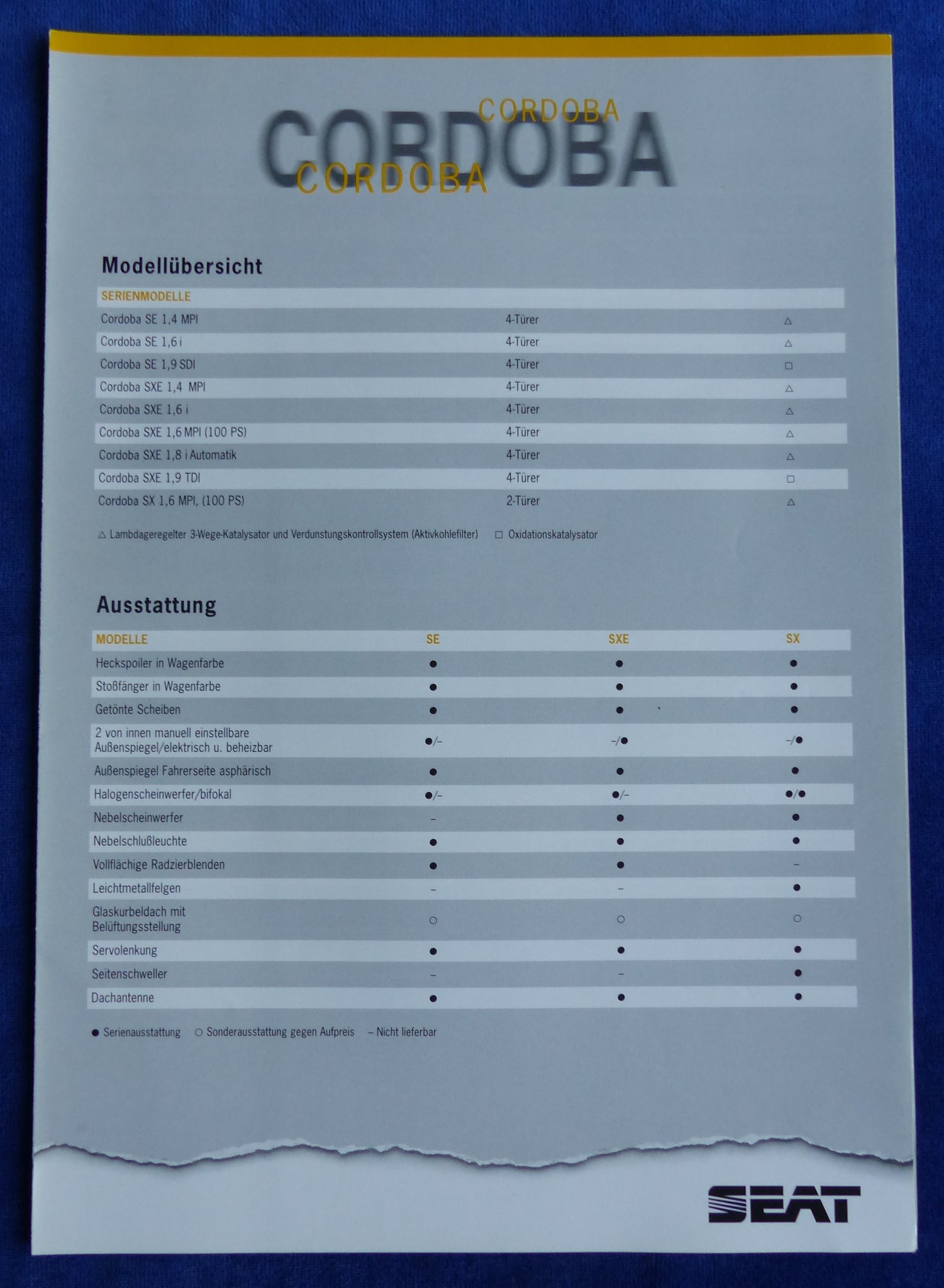 Inhalt / Modelle: Cordoba SE / SXE / SX - Modelljahr 1997