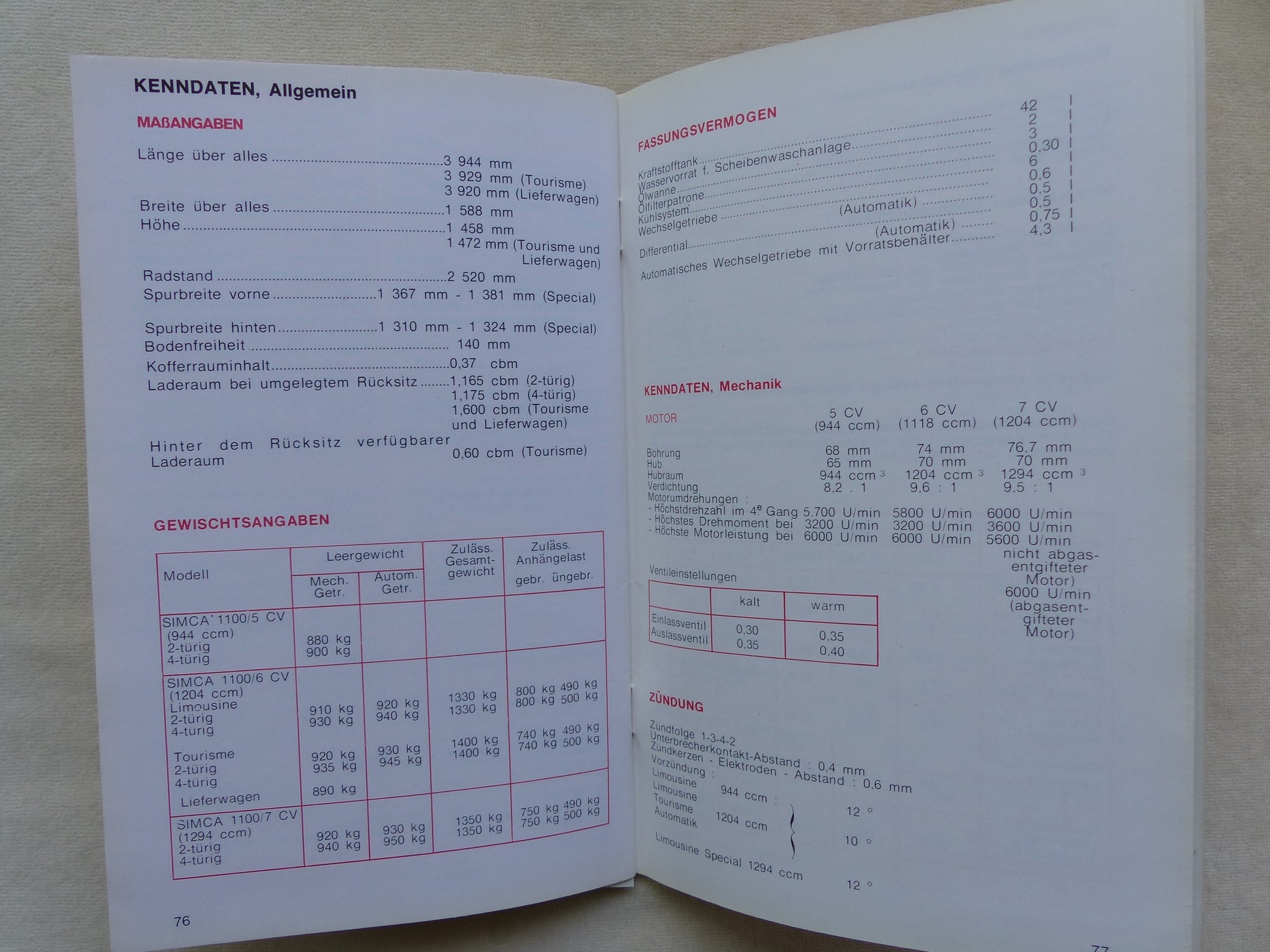 Modelle: u.a. Simca 1100 LS / GL / Special