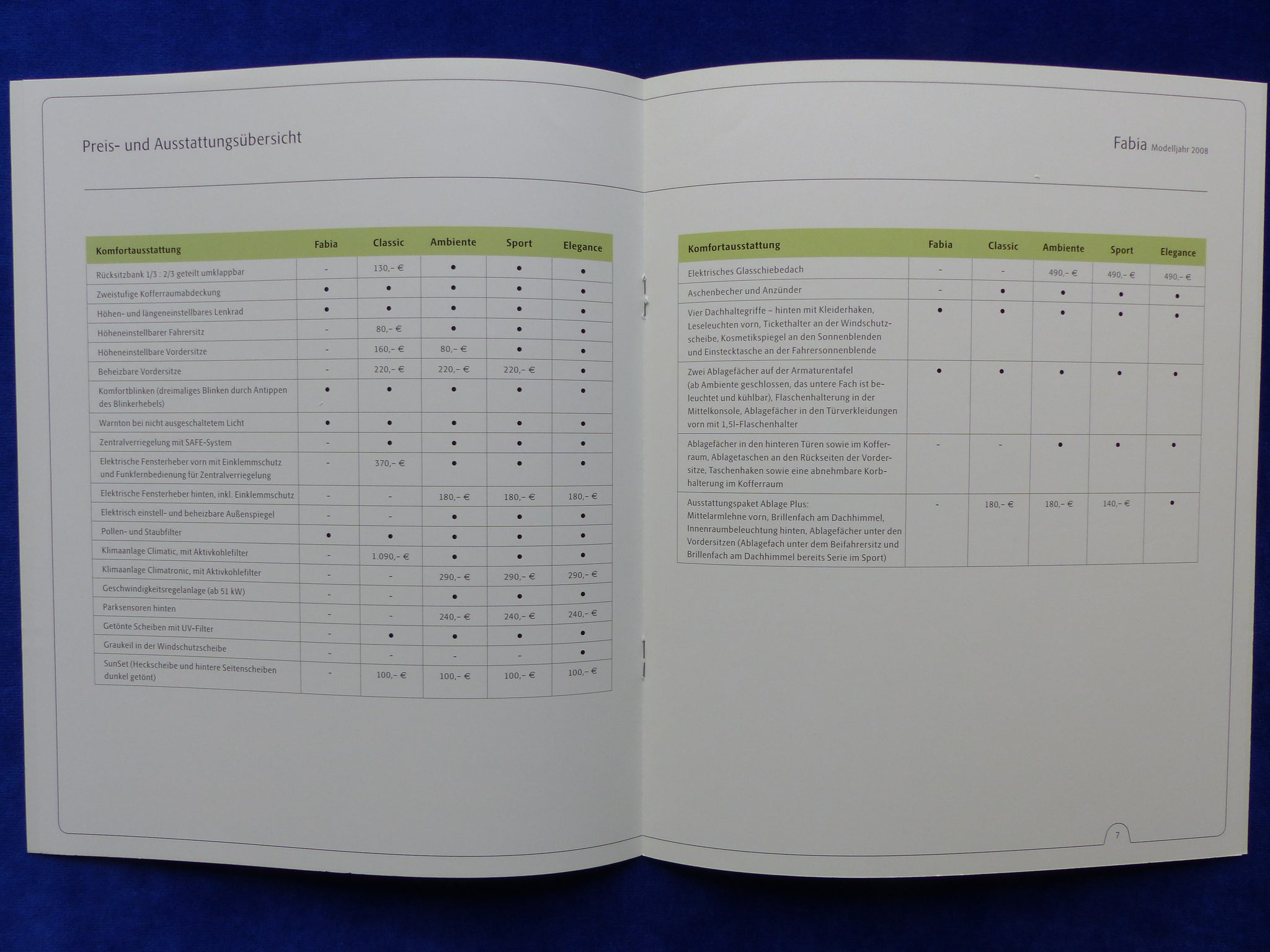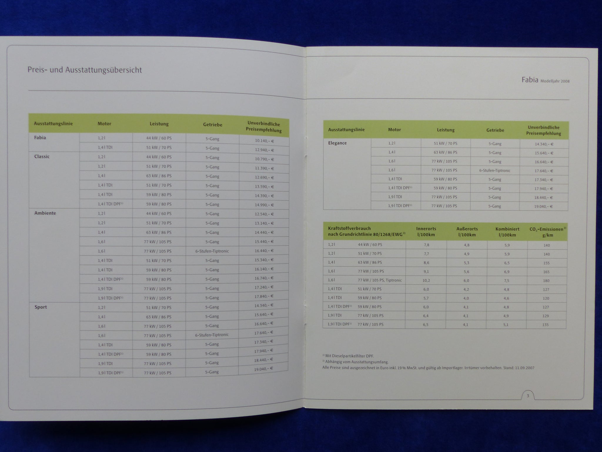 Inhalt / Modelle: u.a. Fabia Classic / Ambiente / Sport / Elegance - Modelljahr 2008