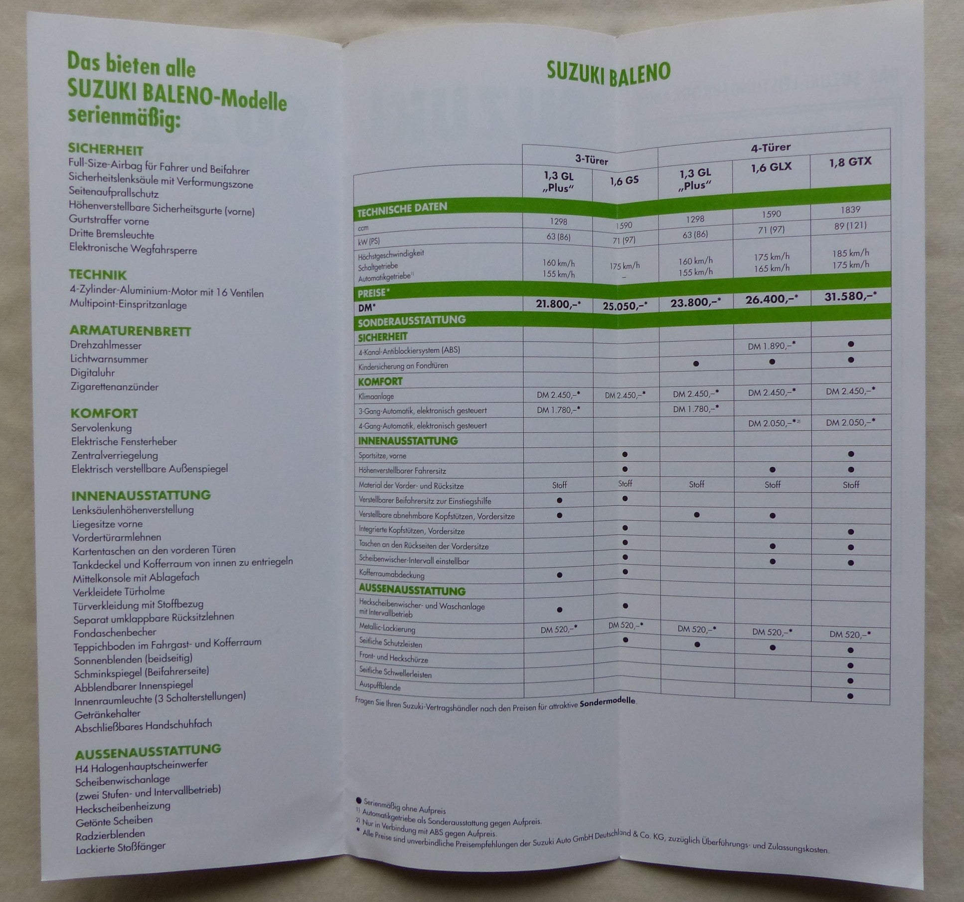 Inhalt / Modelle: u.a. Baleno 3-Türer GL / GS & 4-Türer GLX / GTX - Modelljahr 1999