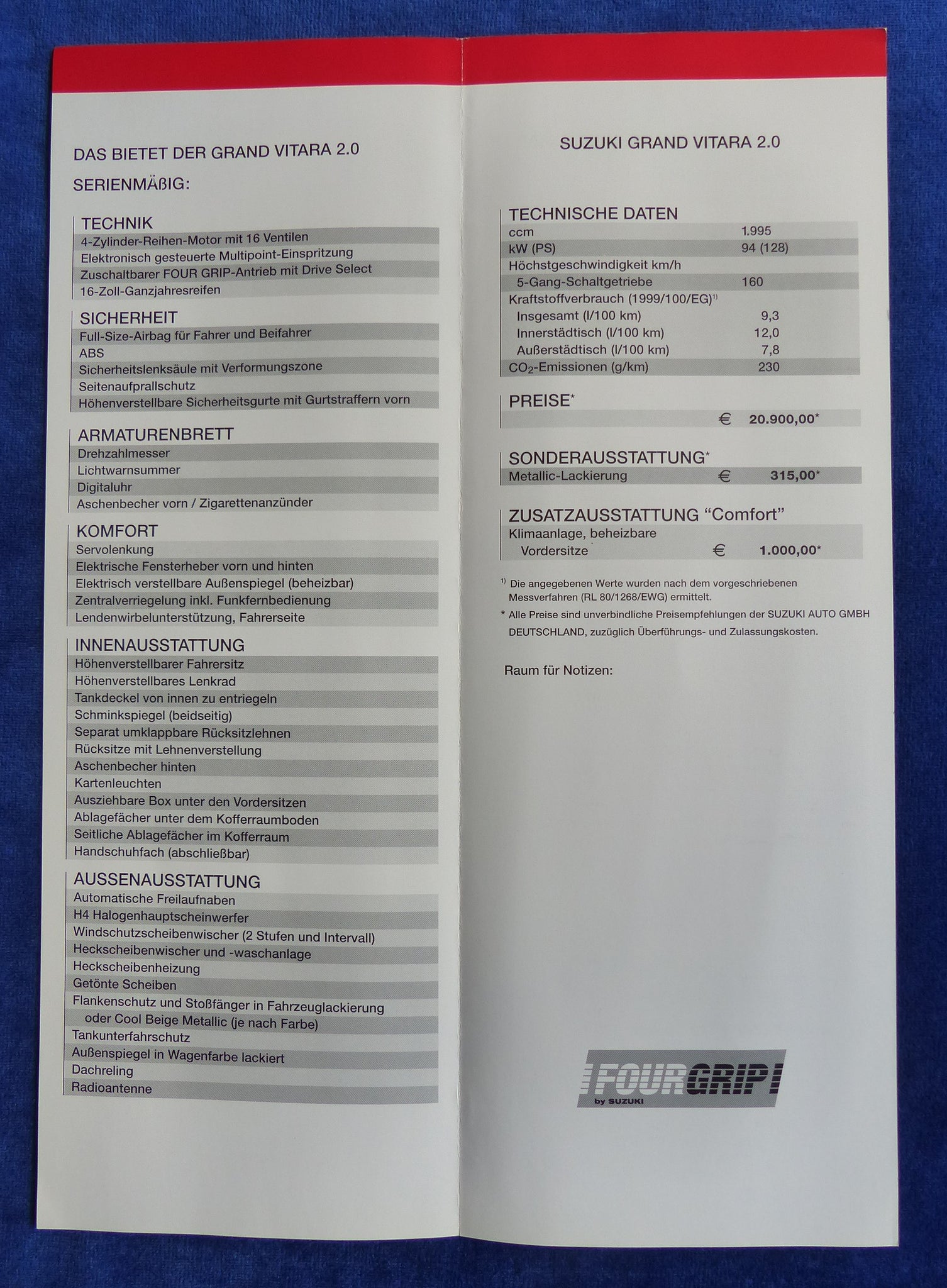Inhalt / Modelle: Grand Vitara Limousine 2.0 - Modelljahr 2003