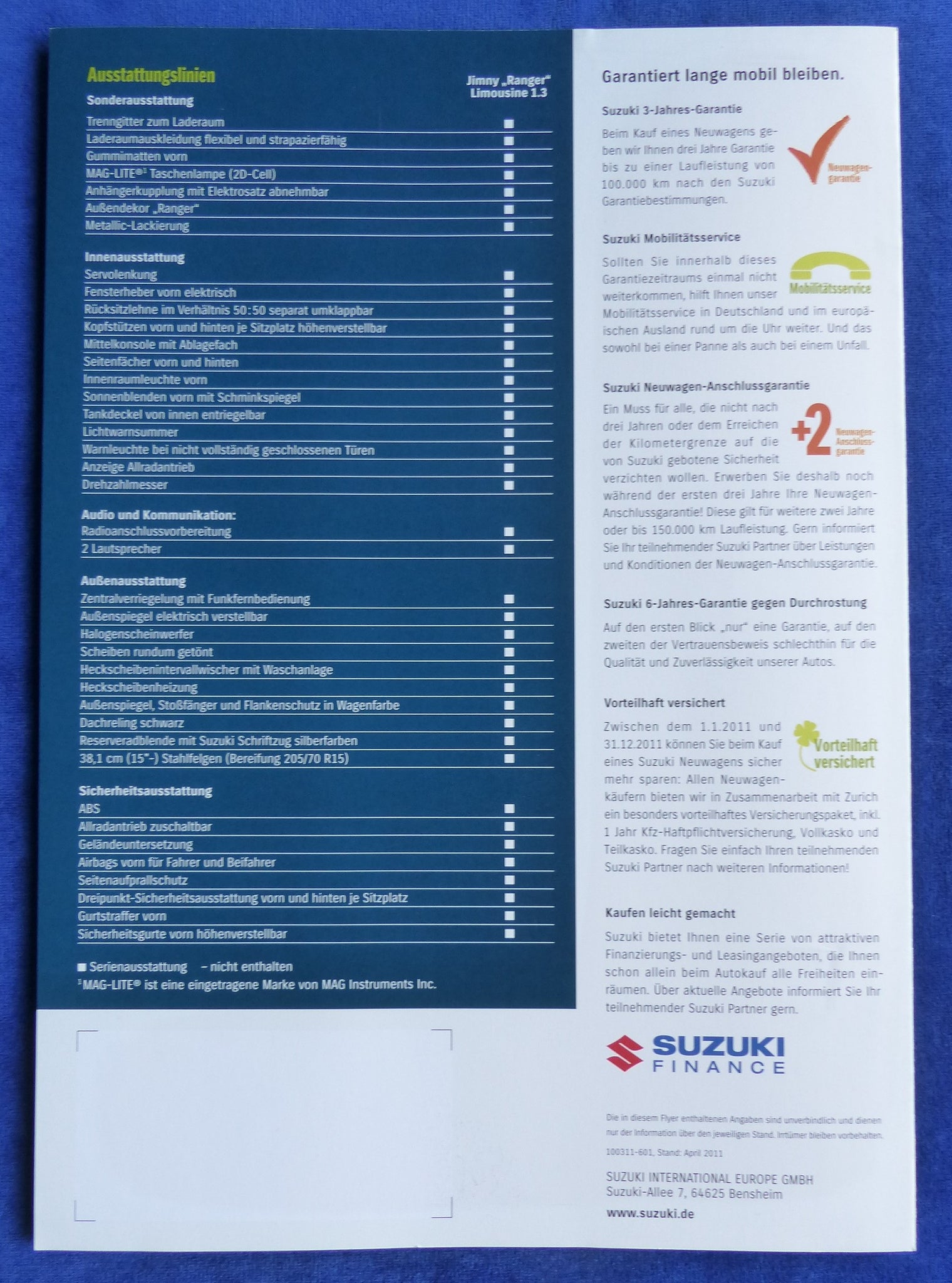 Inhalt / Modelle: Jimny Sondermodell "Ranger" - Modelljahr 2012