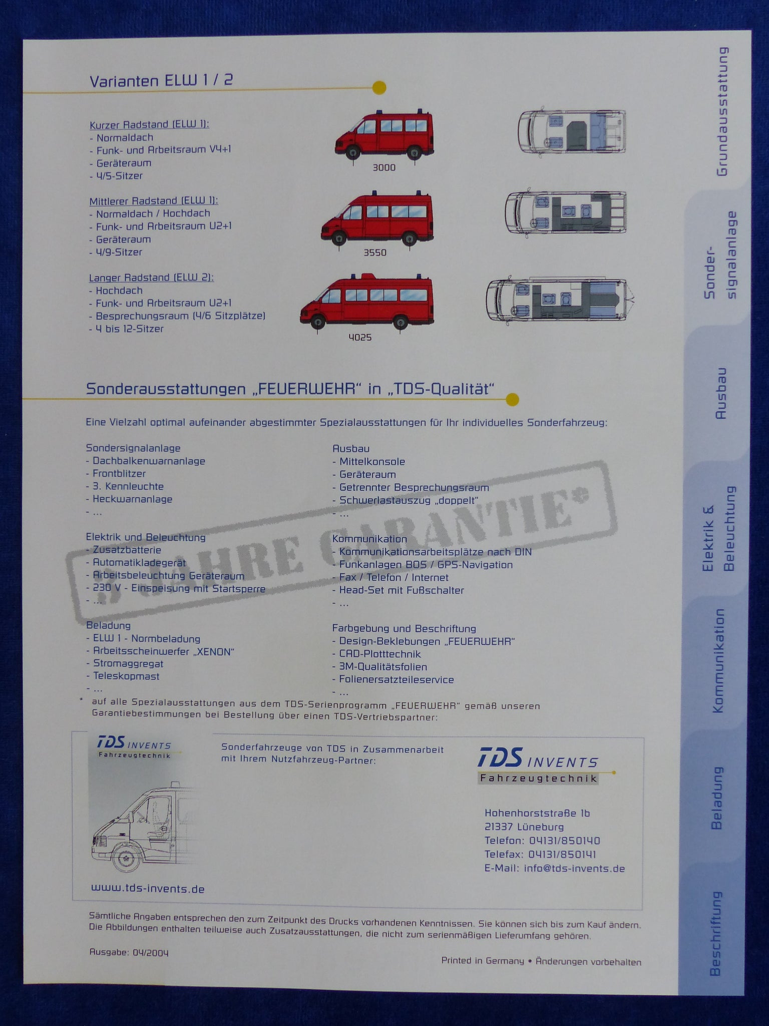 Inhalt / Modelle: 3,5t Kombi für die Einsatzleitung