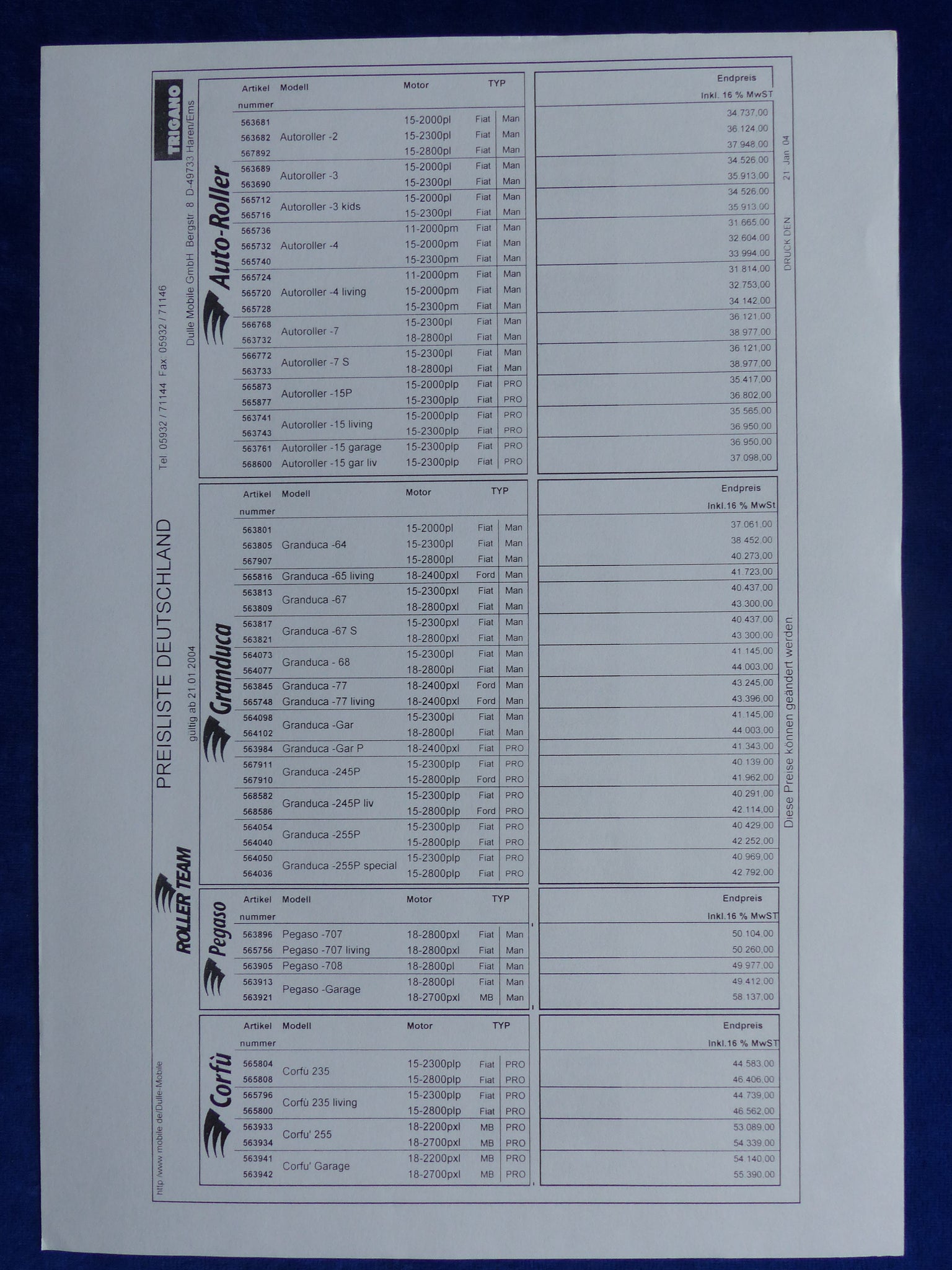 Inhalt / Modelle: u.a. Auto-Roller, Granduca, Corfù, Pegaso