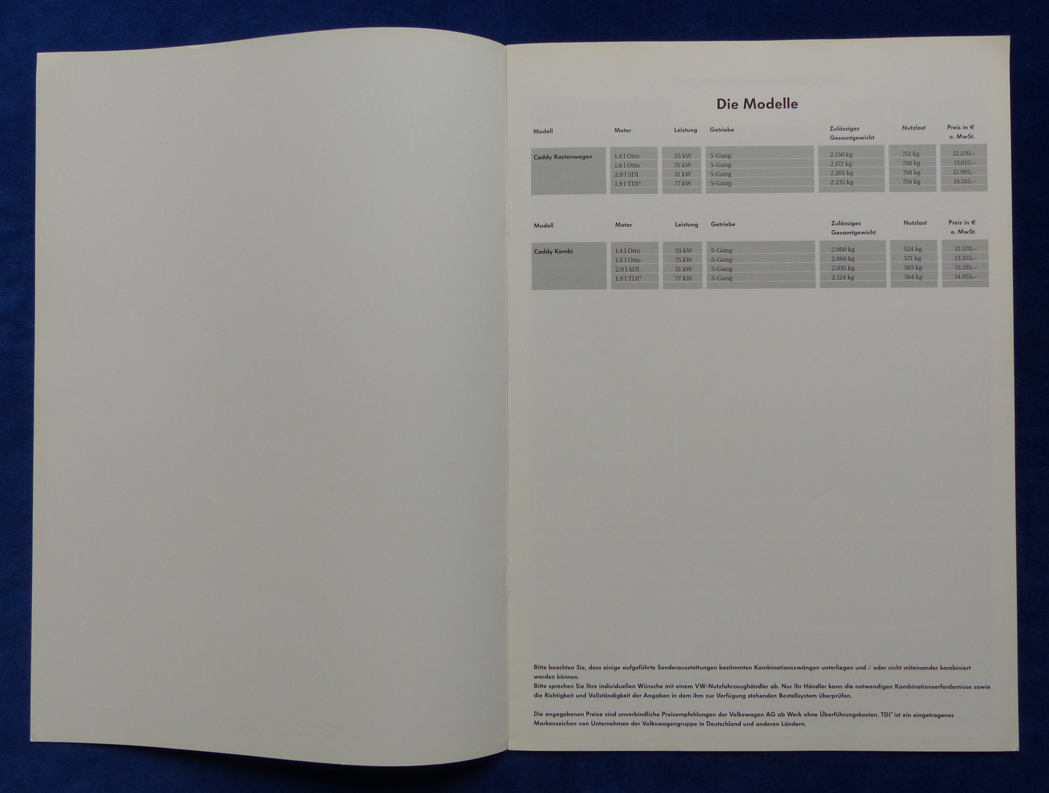 Inhalt / Modelle: u.a. Caddy Kastenwagen / Kombi - Modelljahr 2004